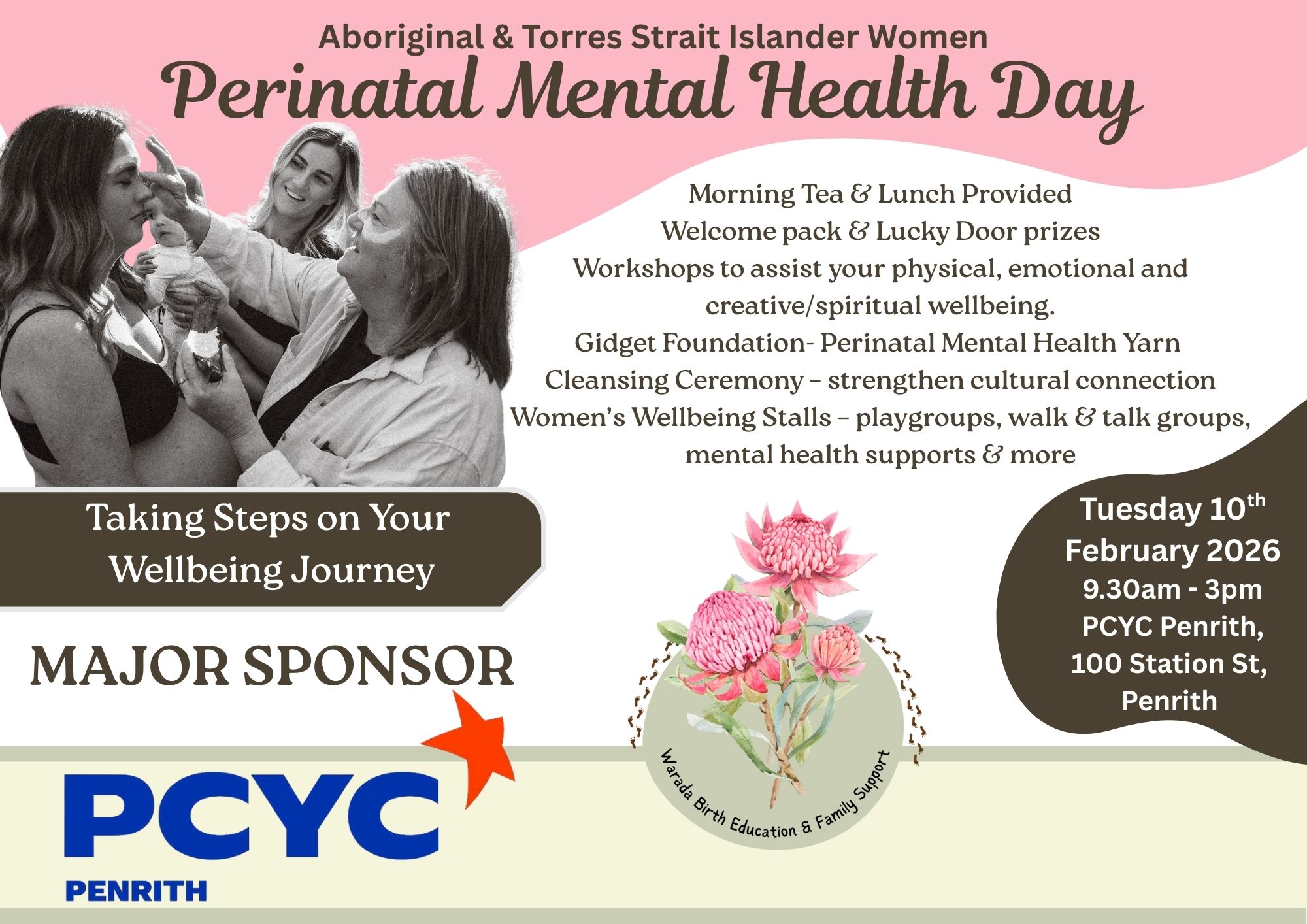 Delivered by Warada Birth Education & Family Support – a 100% Aboriginal-owned organisation supporting women and families through culturally grounded care.
